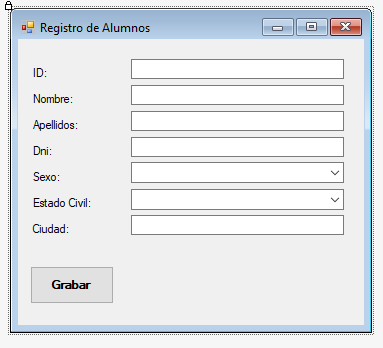 4. Cambie de nombre (propiedades) a los controles: TextBox, ComboBox y Button